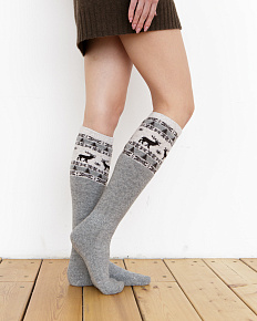Теплые гольфы из монгольской шерсти серые с рисунком