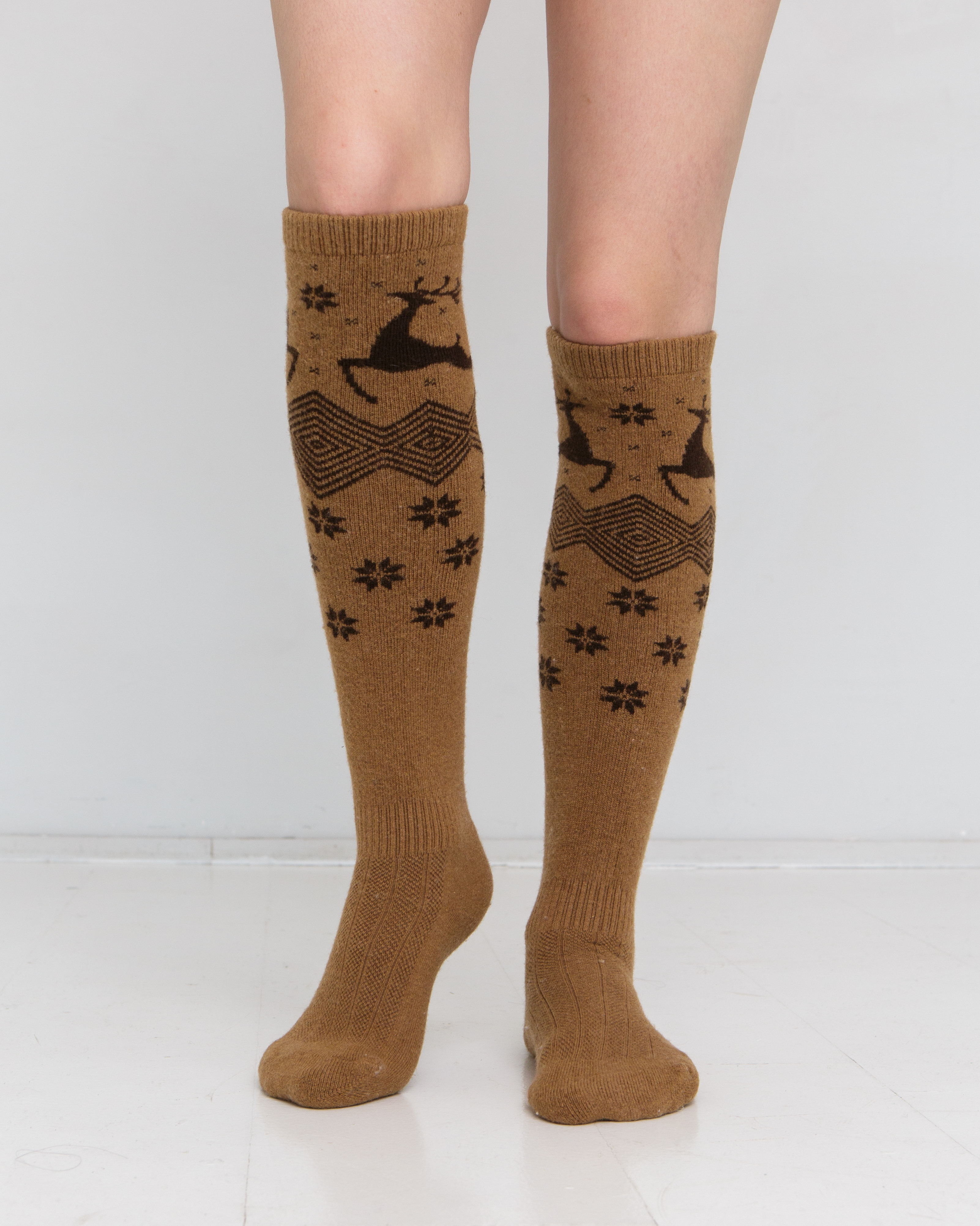 Теплые гольфы из монгольской шерсти рыжие с рисунком