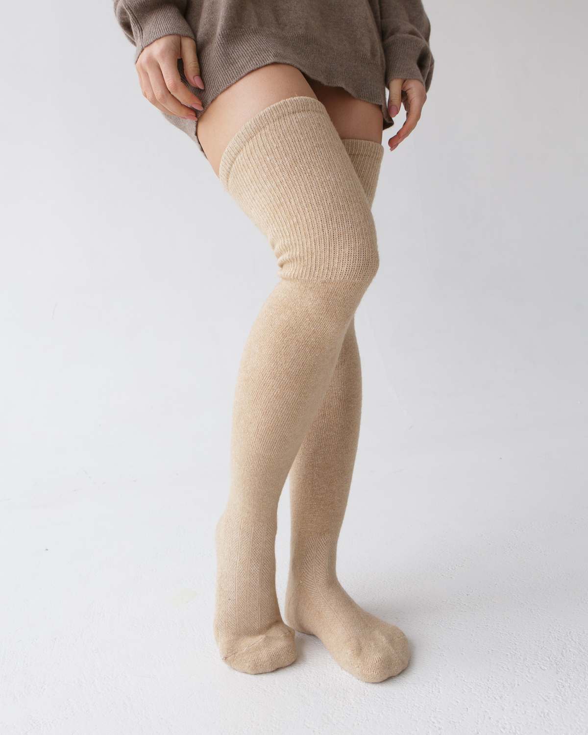 Теплые чулки из монгольской шерсти бежевые