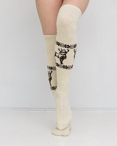 Теплые чулки из 100% шерсти с рисунком бежевые