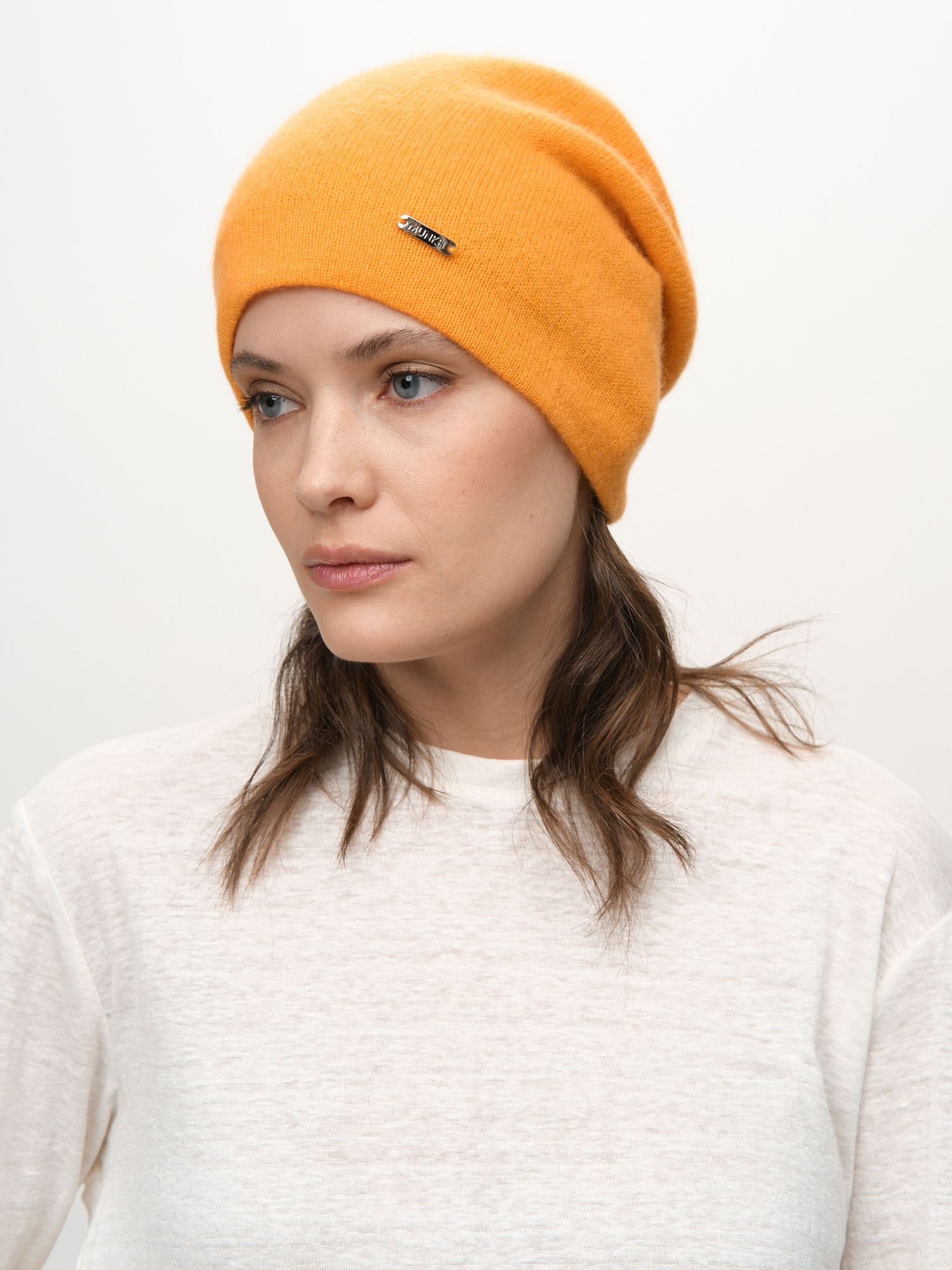 Шапка из кашемира 04322 оранжевая