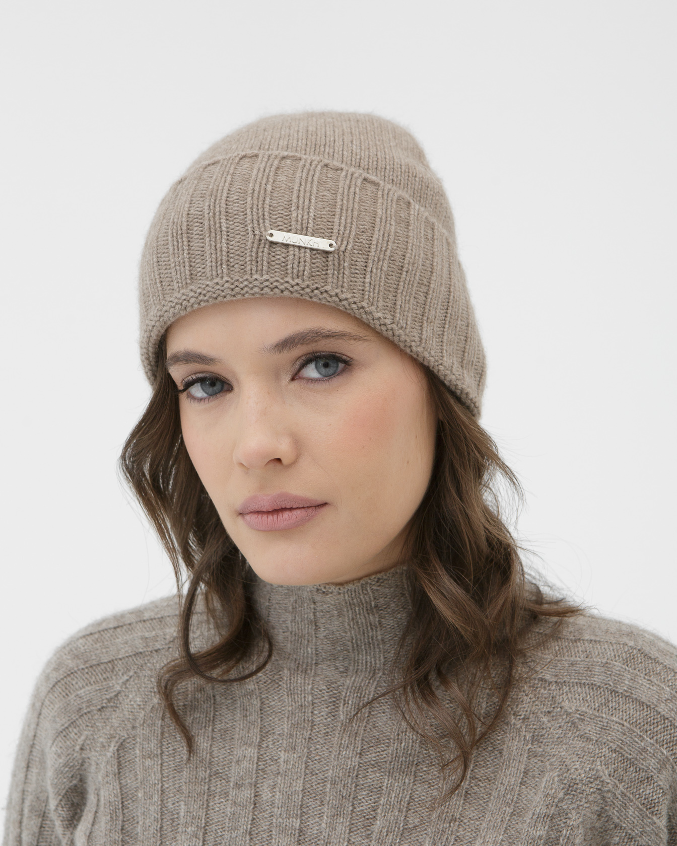 Классическая форма с аккуратной вязкой и подворотом создаёт универсальный, вневременной образ. Минималистичная металлическая плашка добавляет изделию аккуратный акцент и подчёркивает премиальность.