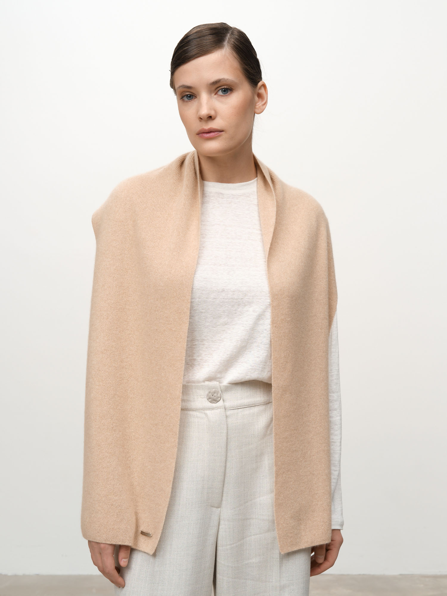 100% кашемир. Натуральный кашемир отличается исключительной мягкостью, лёгкостью и превосходными теплоизоляционными свойствами. Материал приятен к коже, хорошо удерживает тепло и обеспечивает комфорт в прохладную погоду.