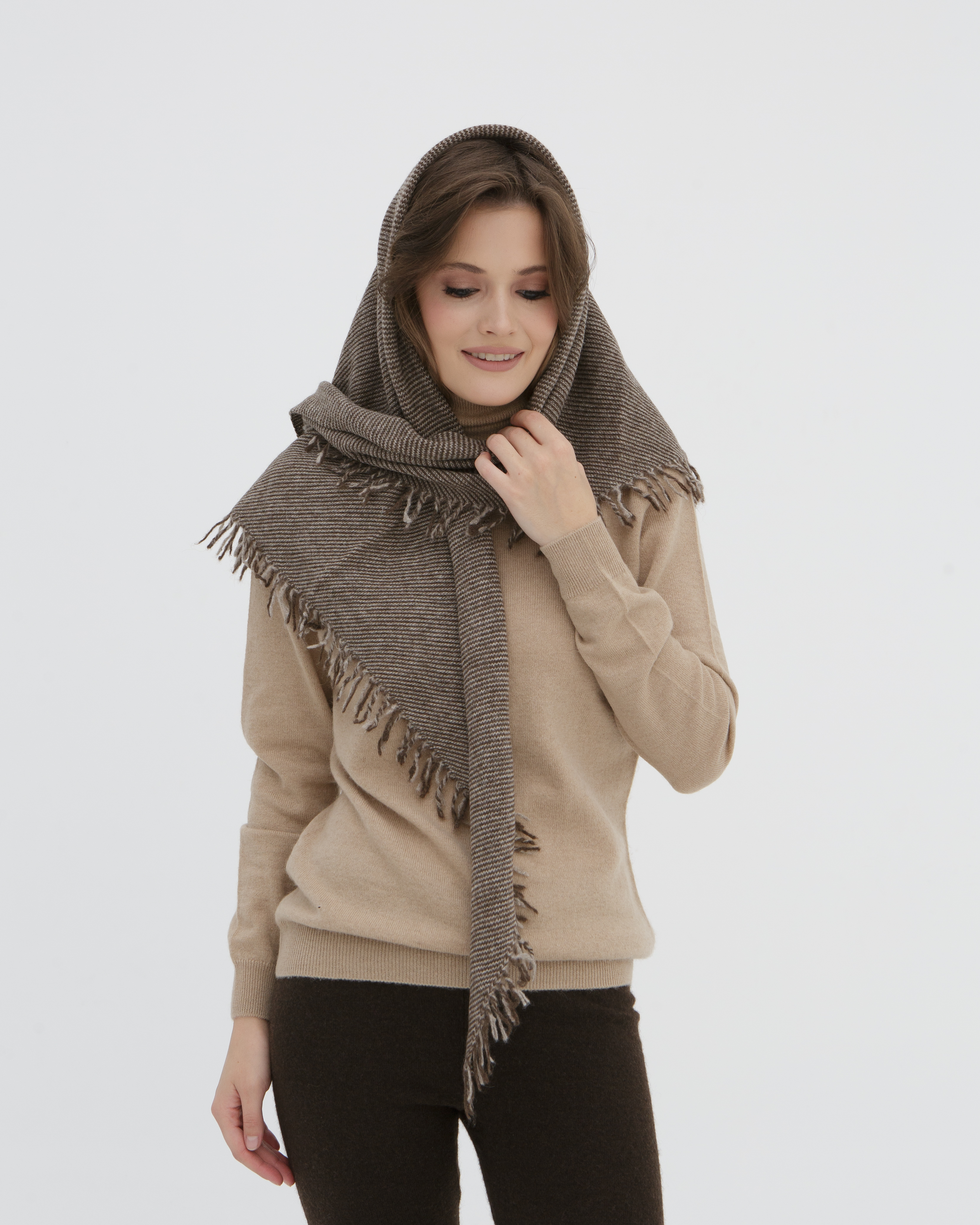 Мягкий и тёплый аксессуар, который можно носить разными способами — как косынку на голове, как шарф вокруг шеи или как лёгкую накидку на плечах. Подходит для повседневной носки, прогулок и прохладной погоды.