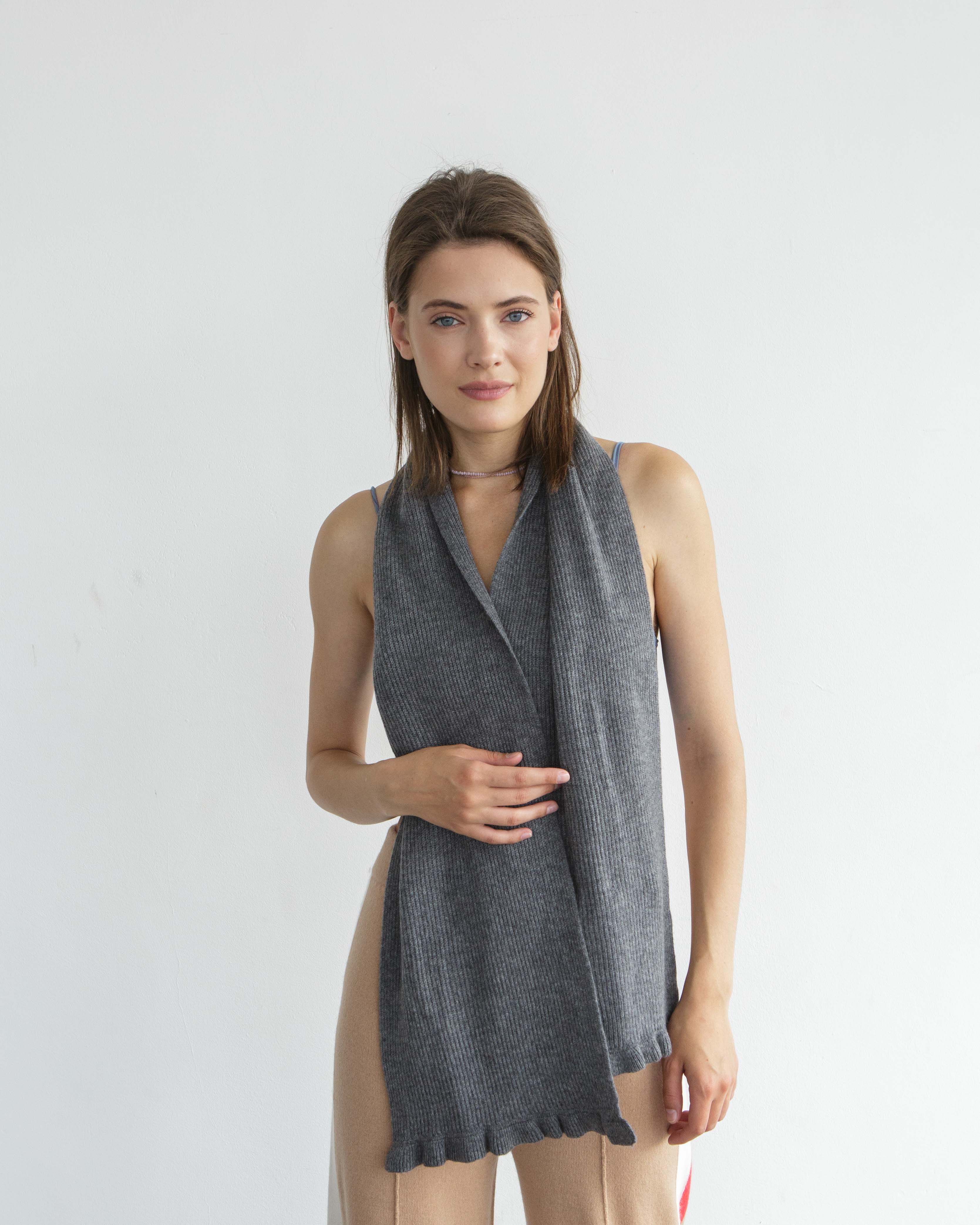 Лёгкий, мягкий и пластичный аксессуар, который можно носить разными способами — свободно на плечах, обернув вокруг шеи или создавая многослойную драпировку. Подходит для повседневной носки, деловых образов и путешествий.