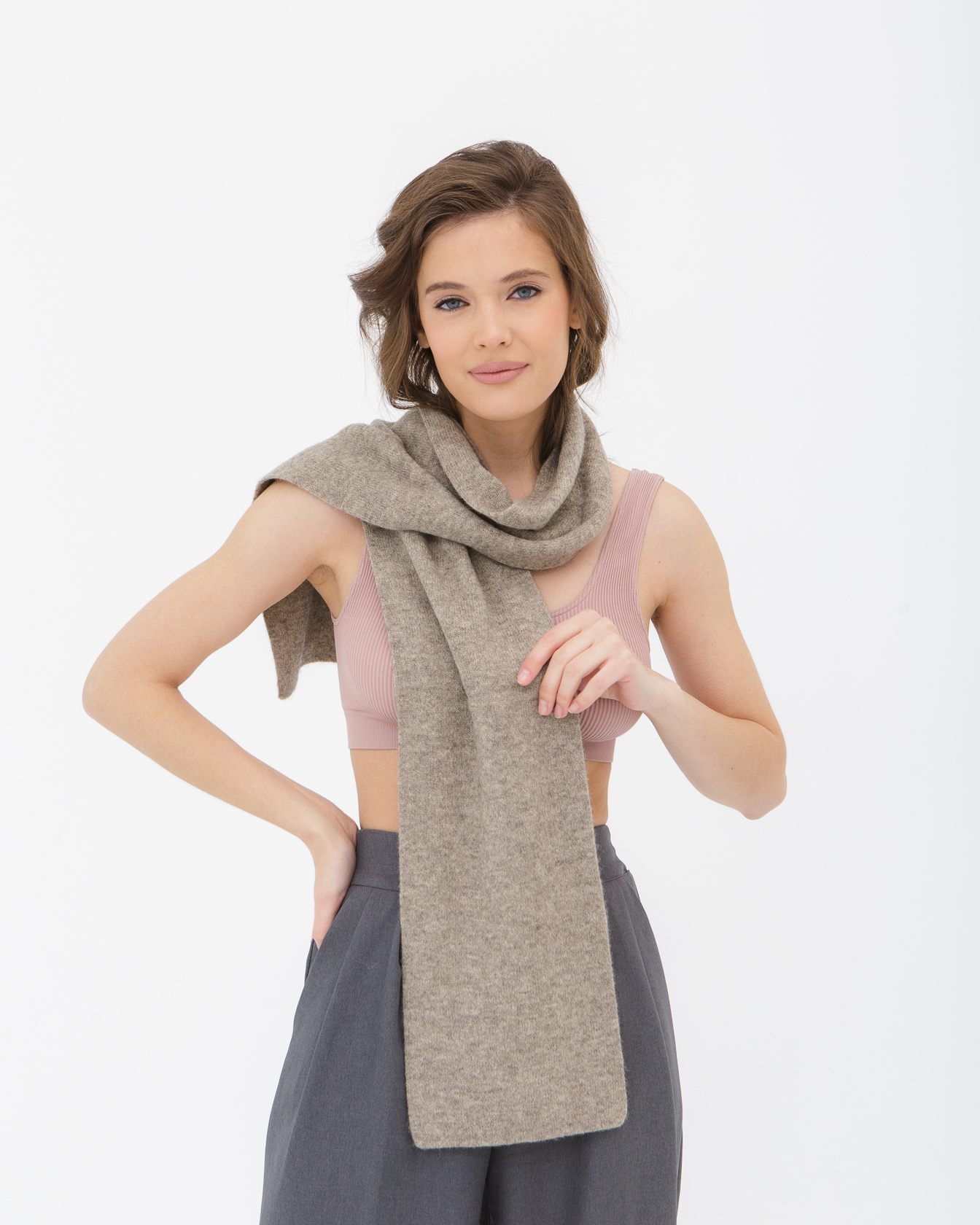 Мягкий и тёплый шарф красиво драпируется и обеспечивает комфорт в прохладную и холодную погоду. Универсальный аксессуар для повседневных, деловых и многослойных образов.