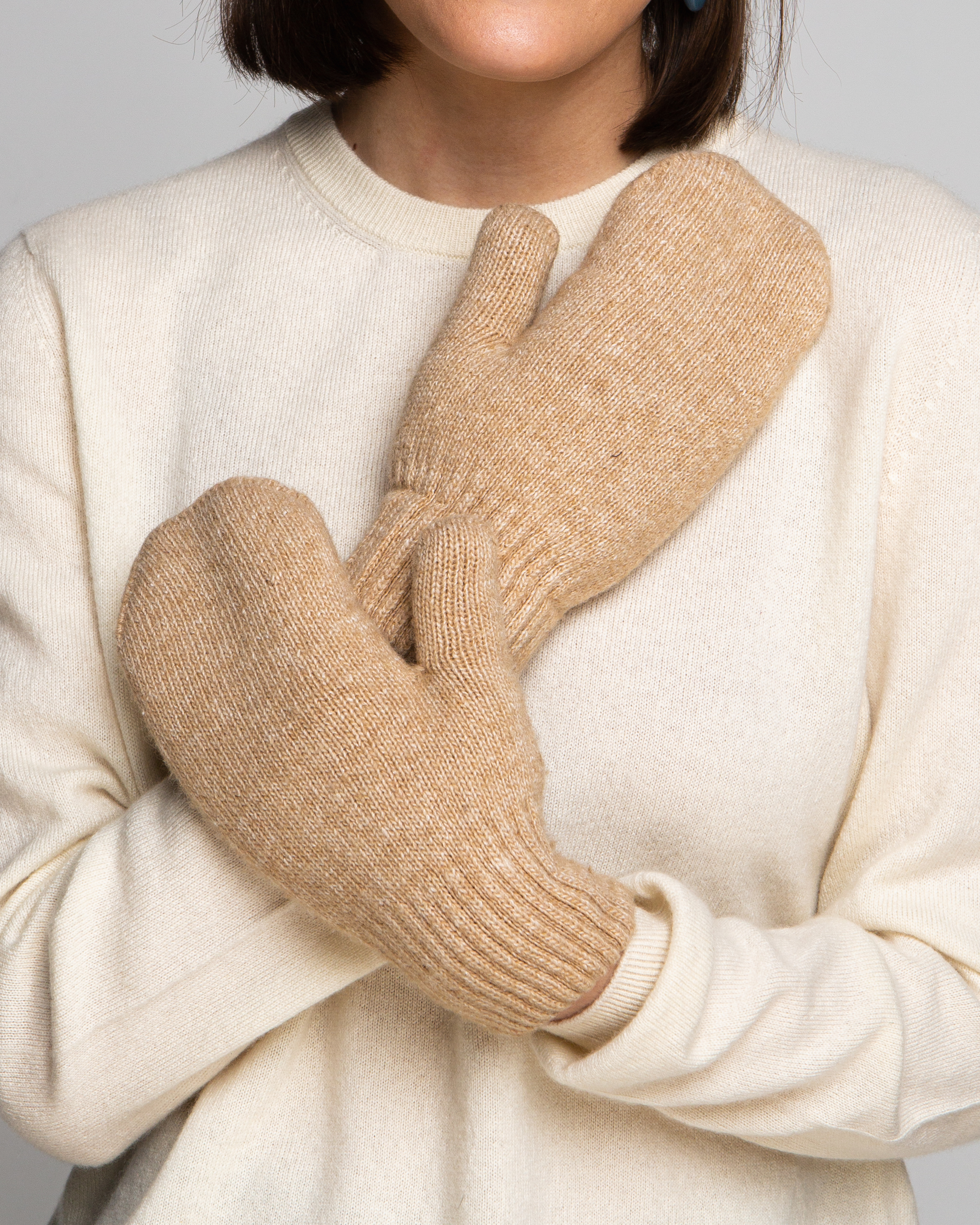 Теплые варежки из монгольской шерсти бежевые