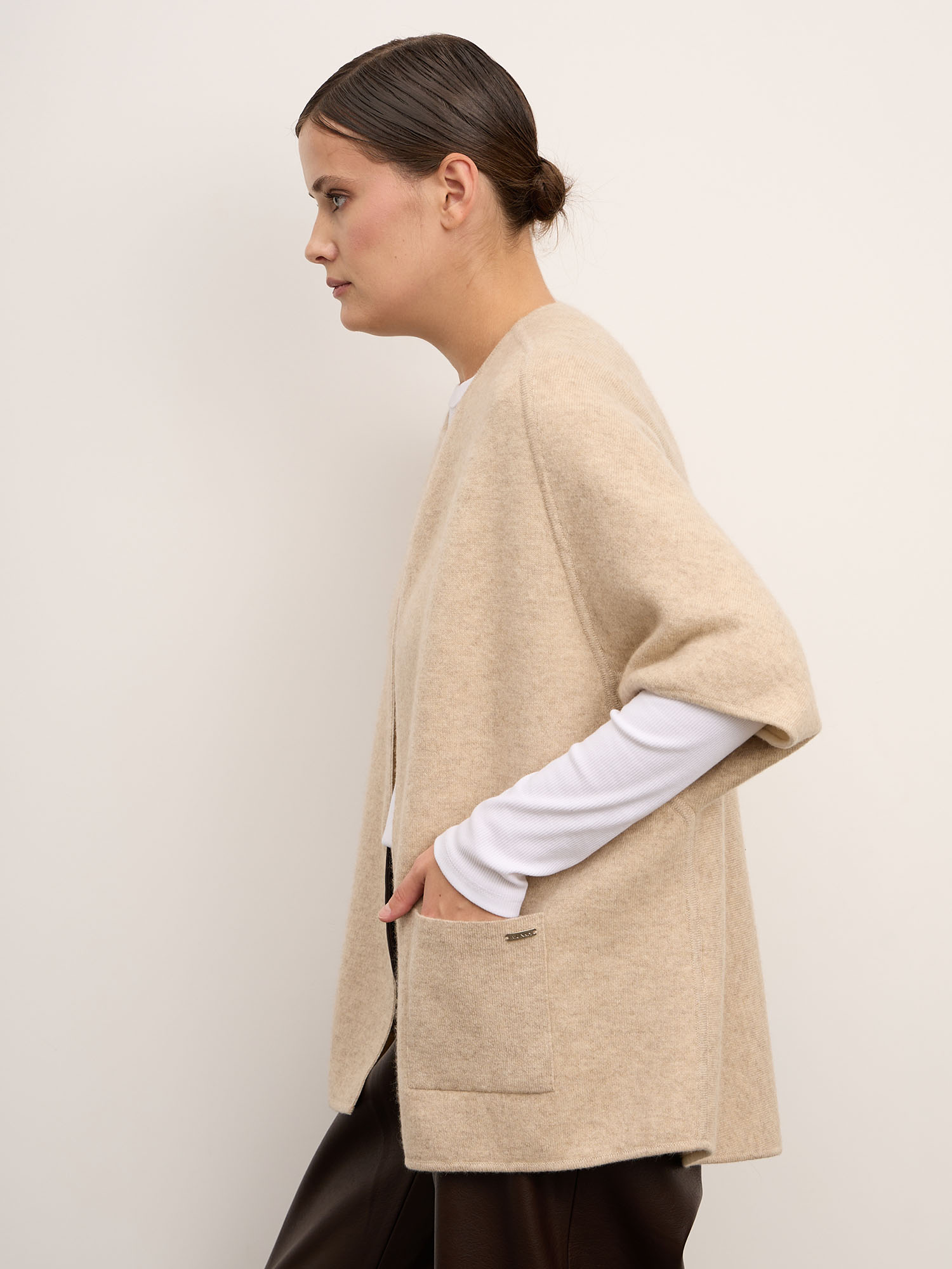 Свободный крой без застёжек, прямые линии, минималистичный стиль. Пончо удобно надевать поверх водолазок, джемперов и рубашек.