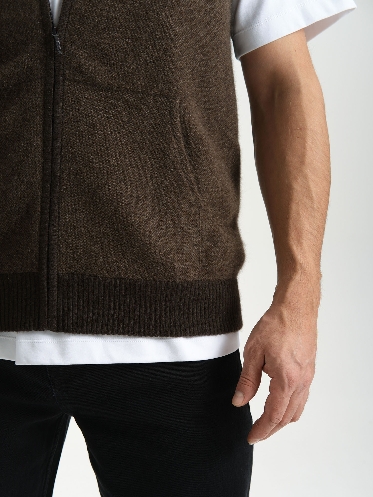 Премиальный мужской жилет из 100% натурального пуха яка с застежкой на молнии в классическом коричневом цвете – идеальное решение для ценителей натуральных материалов и комфорта. Этот стильный предмет гардероба станет незаменимым для тех, кто предпочитает сочетать практичность, тепло и элегантность.