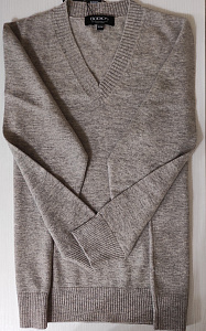 Пуловер тонкий, не просвечивает, держит форму. Цвет грязно-серый меланж. Содержание кашемира не чувствуется.