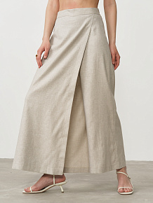 Расклешённый силуэт с имитацией юбки за счёт перекрывающихся полотен. Свободный крой обеспечивает лёгкость движений и воздушность образа.