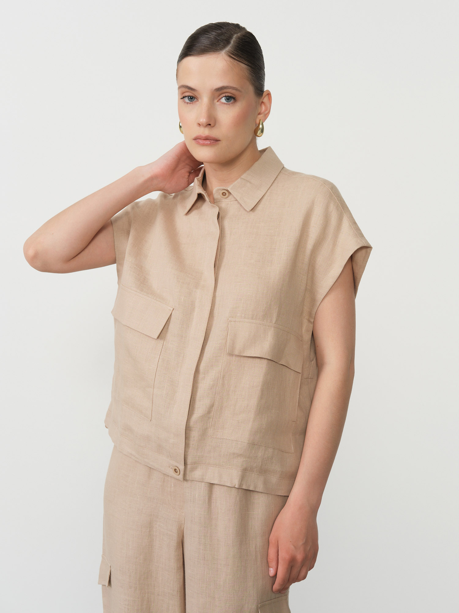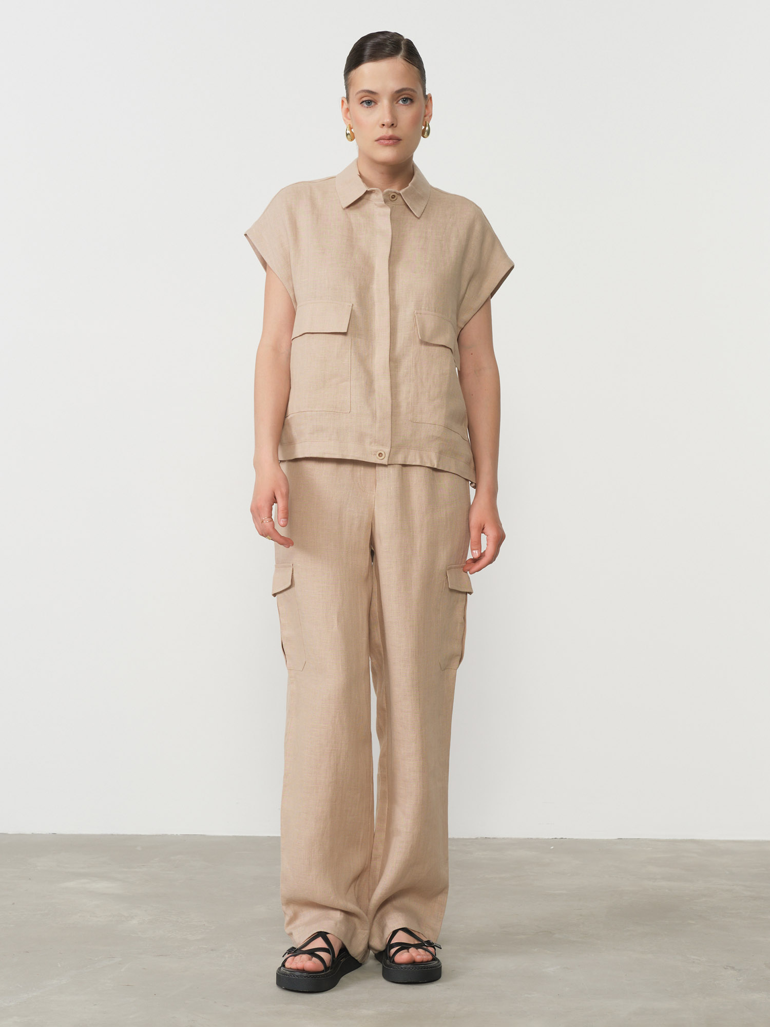 100% лён — натуральный, дышащий материал с характерной текстурой. Обеспечивает комфорт в жаркую погоду и приятен к телу.