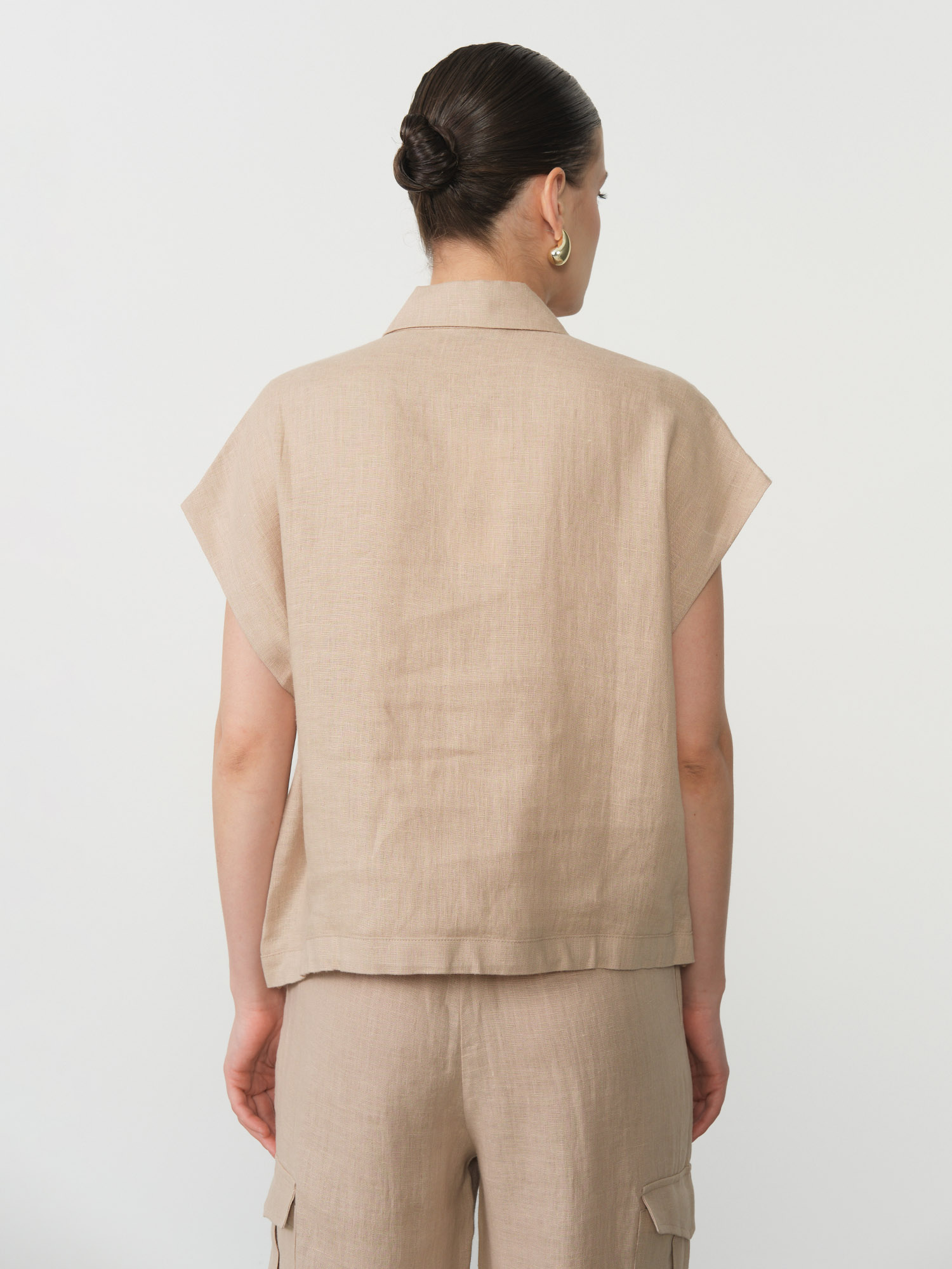 Отлично сочетается с брюками, юбками и шортами из льна. Подходит для повседневных, городских и летних образов.