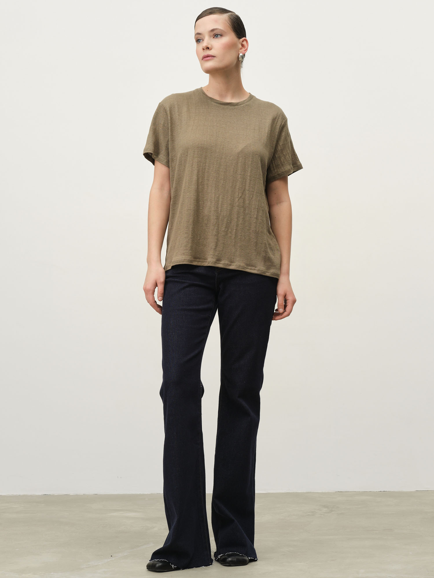 Цвет хаки — это универсальный и стильный оттенок, который никогда не выходит из моды. Он отлично сочетается с другими нейтральными оттенками и яркими акцентами, что делает футболку идеальной для создания различных образов.