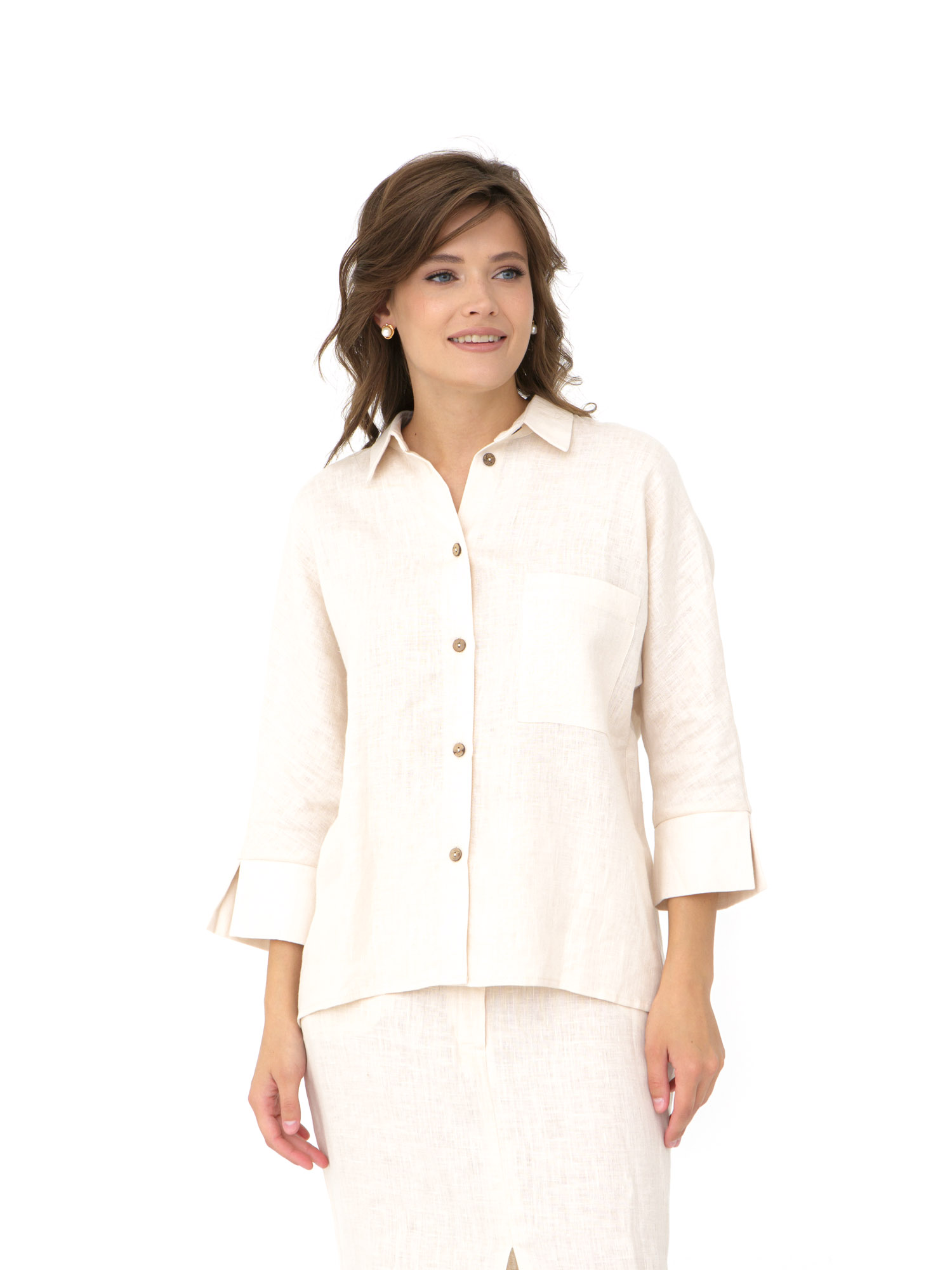 Рубашка льняная 630 бежевая