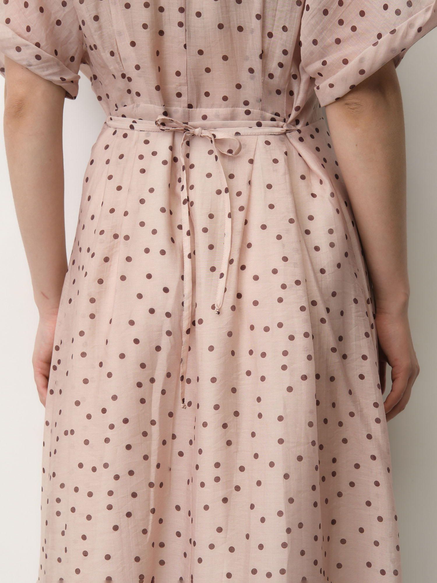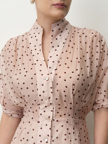 Платье из тенселя 90501 пудровое в горошек