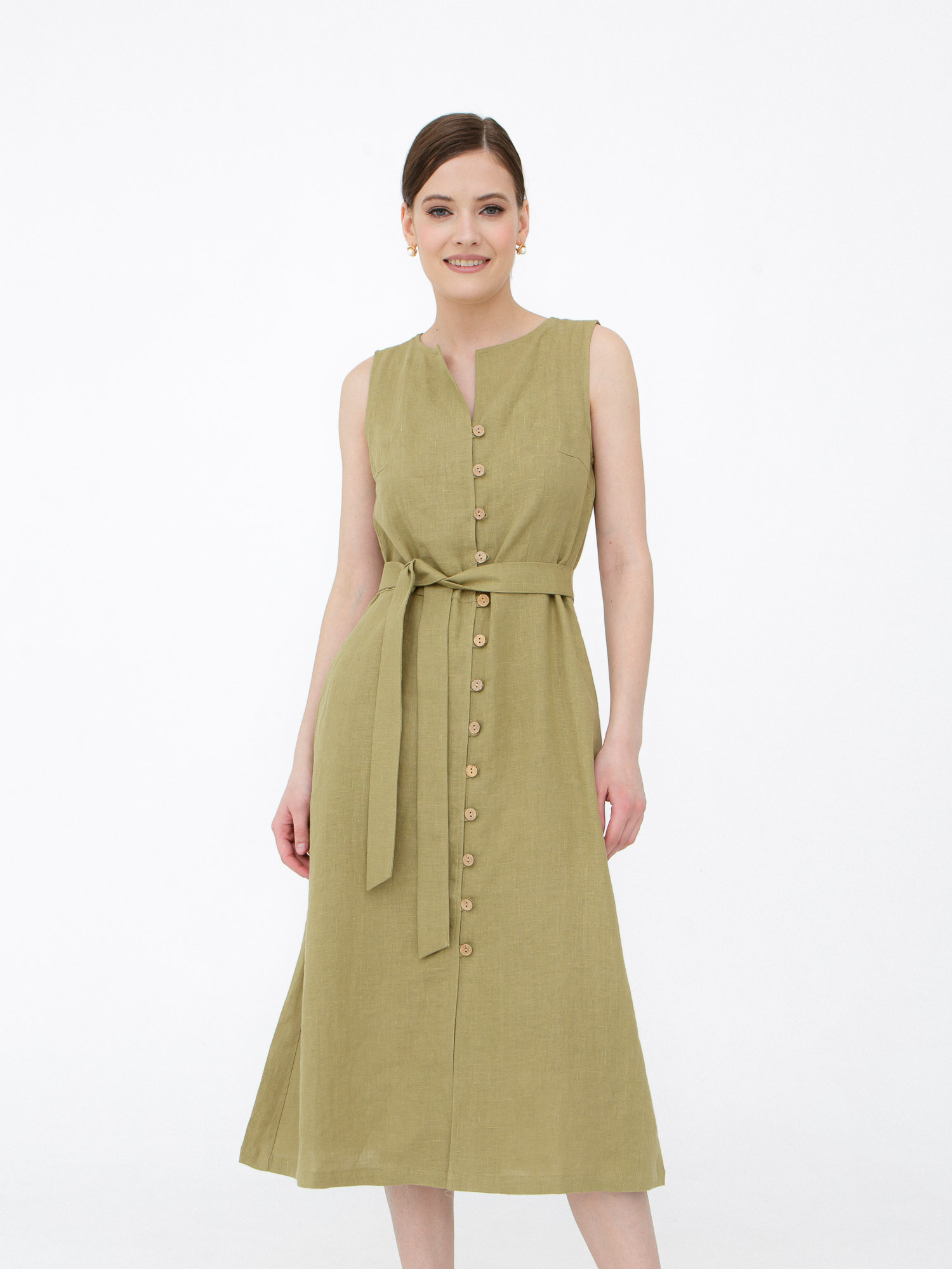 Платье из льна КЛ-7415-ИЛ23 светлый хаки
