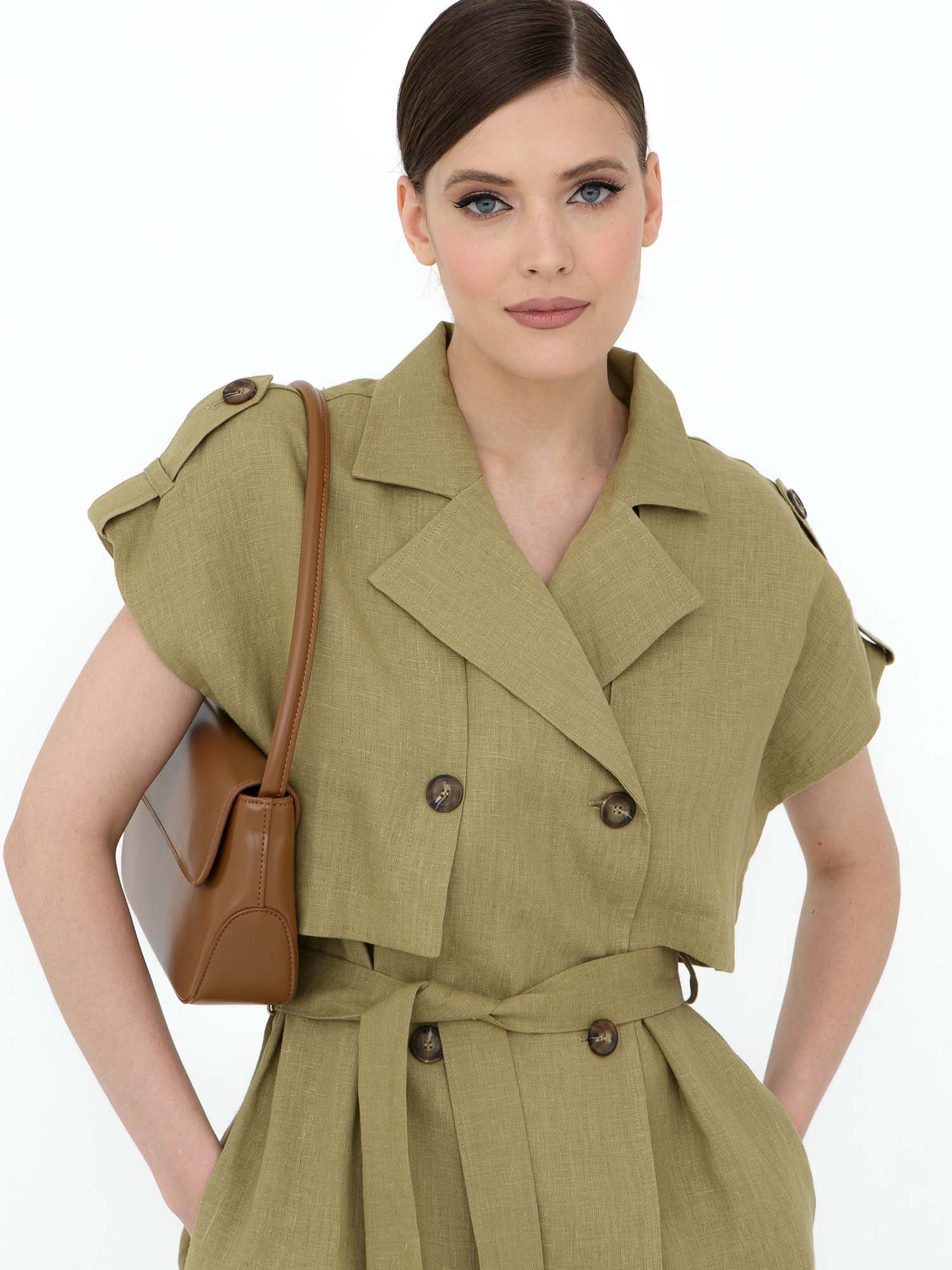 Приобретите это льняное платье прямо сейчас и откройте для себя непревзойденный комфорт натуральных материалов! Инвестируя в качественную одежду из льна, вы не только следуете модным тенденциям, но и делаете осознанный выбор в пользу долговечности и экологичности. Обновите свой гардероб этим универсальным платьем в светлом хаки, которое прослужит вам не один сезон и всегда будет выглядеть актуально.