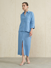 Рубашка льняная 757 морская волна