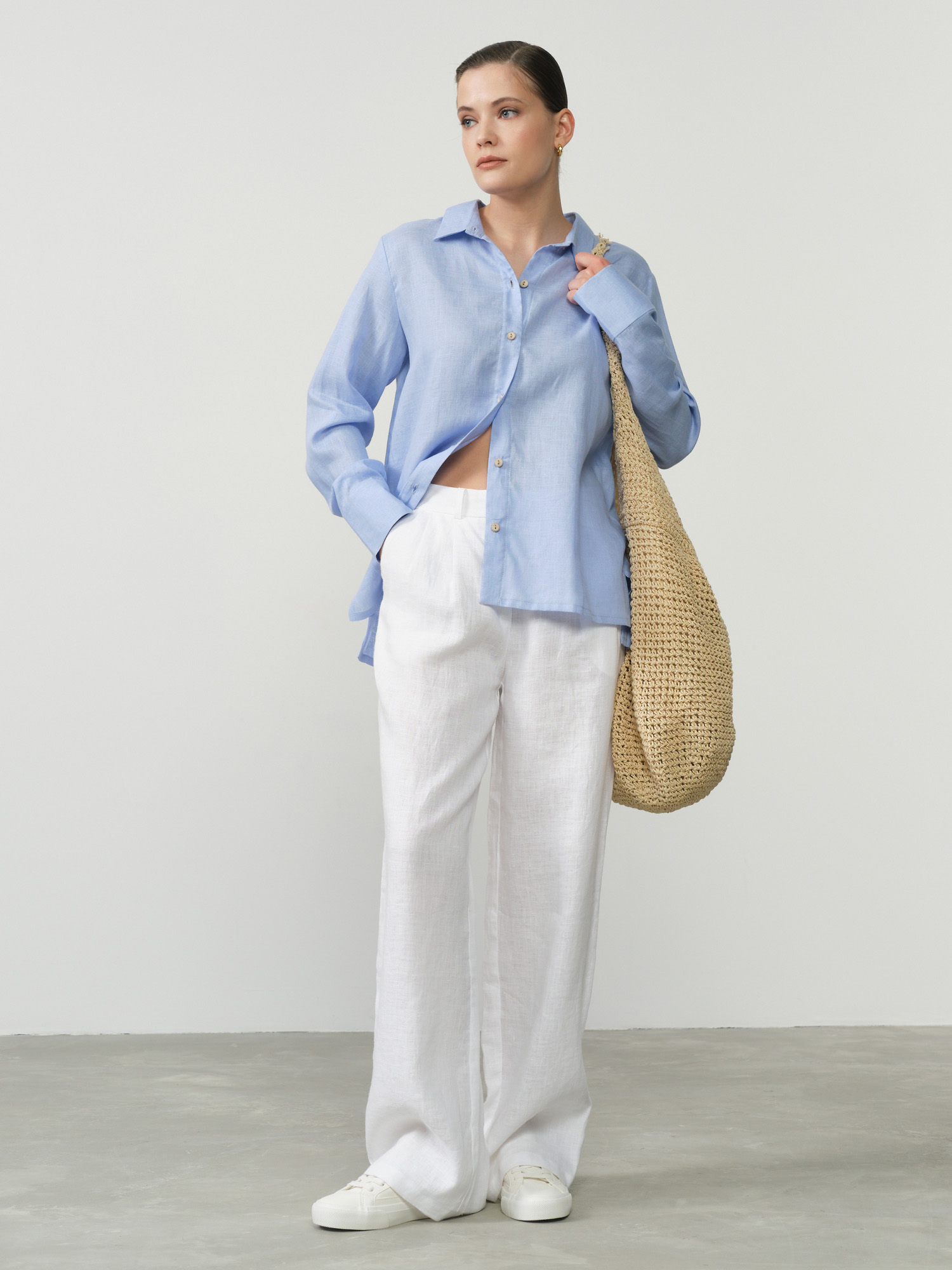 Идеально сочетается с брюками, юбками и шортами в светлых и нейтральных оттенках. Подходит для повседневных, офисных и отпускных образов.