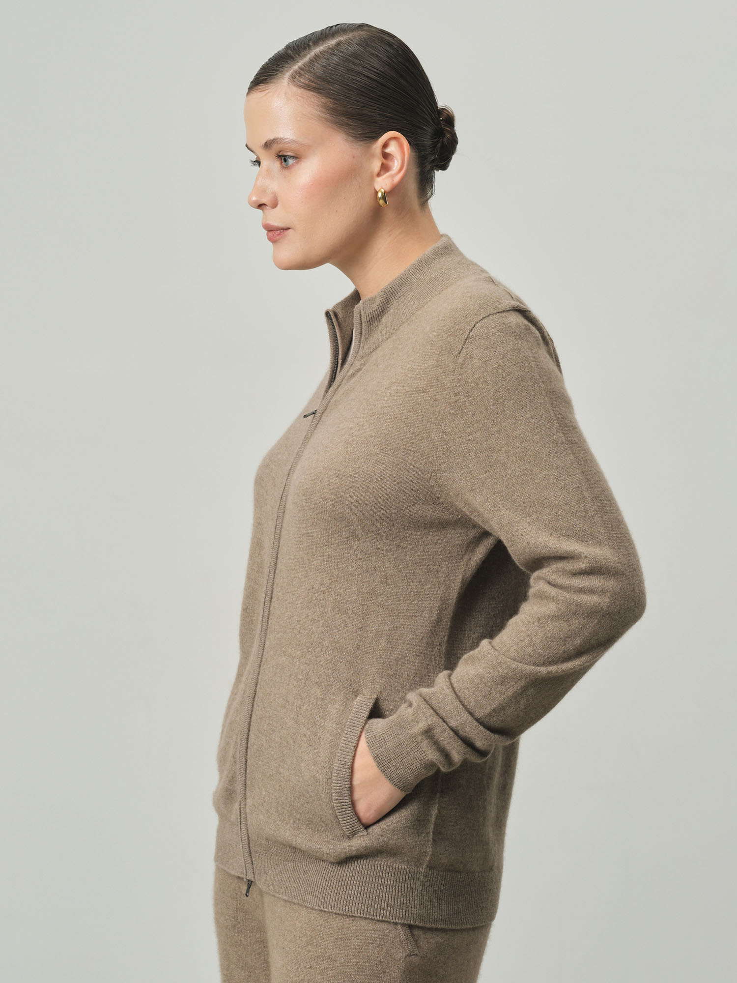 Модель выполнена с круглой горловиной и центральной застёжкой на молнию. Гладкая аккуратная вязка подчёркивает благородную текстуру материала. Минималистичный крой создаёт современный и универсальный силуэт.