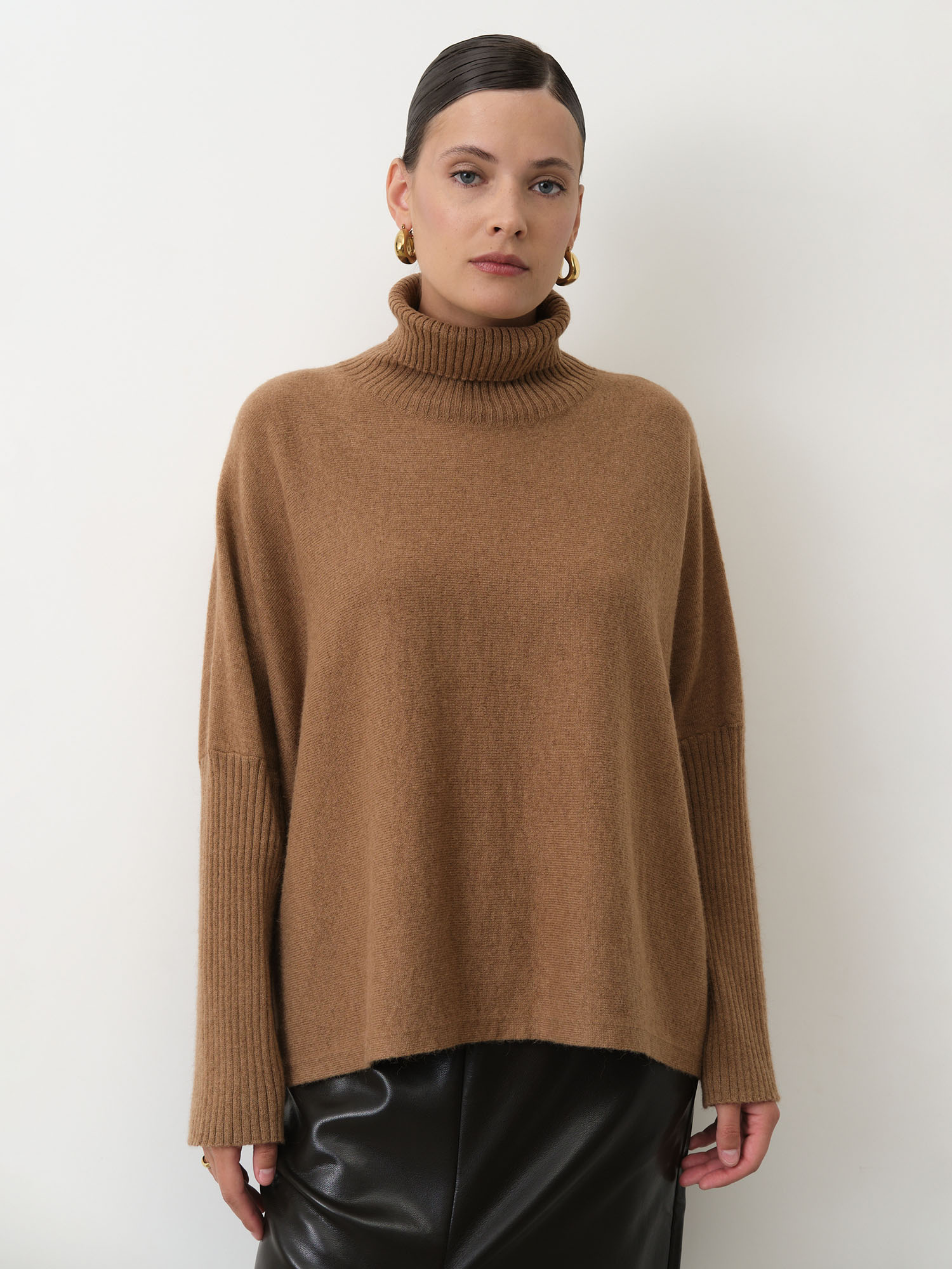 Свободный крой с эффектом oversize и спущенной линией плеча. Высокая горловина добавляет дополнительный комфорт и защиту от холода.
