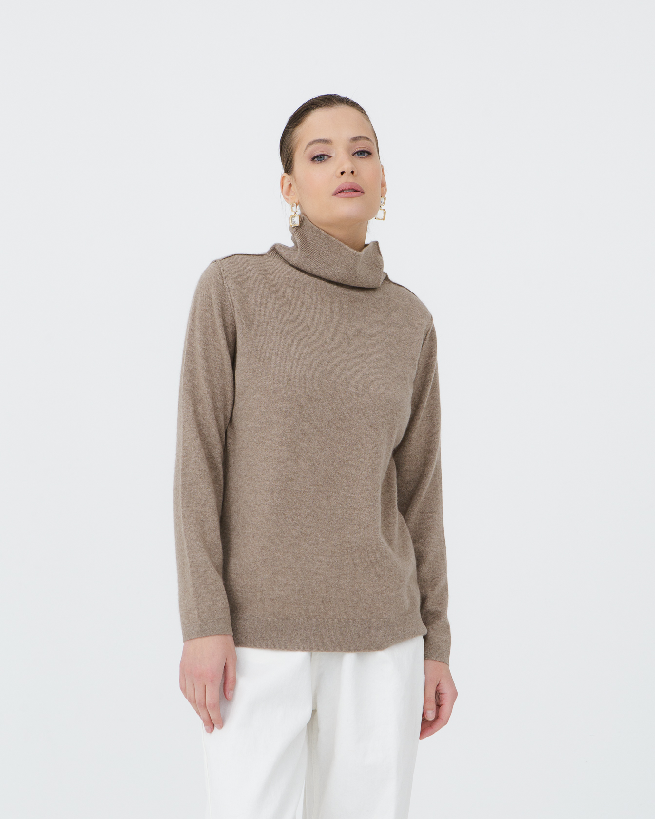 Капучино — тёплый и благородный оттенок, который подчёркивает естественную фактуру кашемира и гармонично сочетается с базовыми цветами одежды.