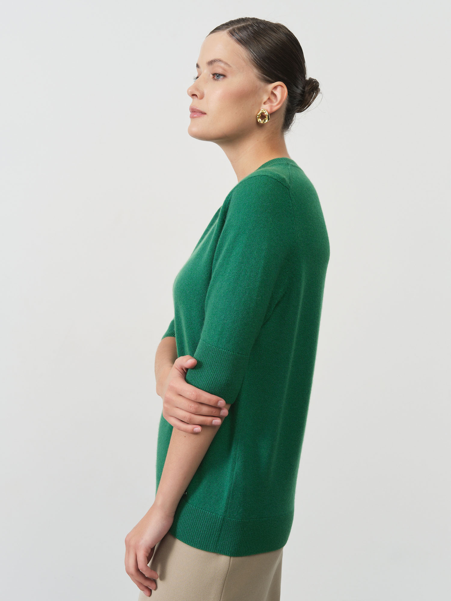 с круглым вырезом под горло, короткий рукав
