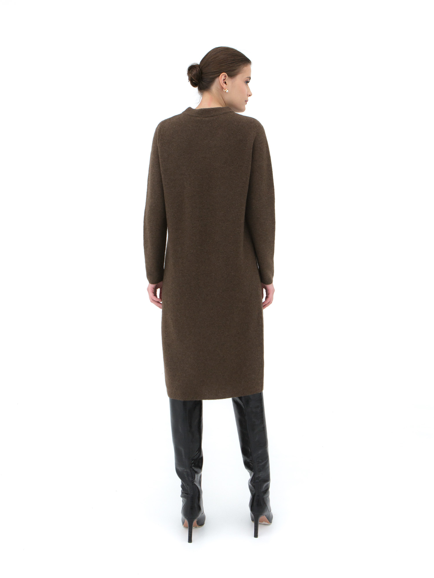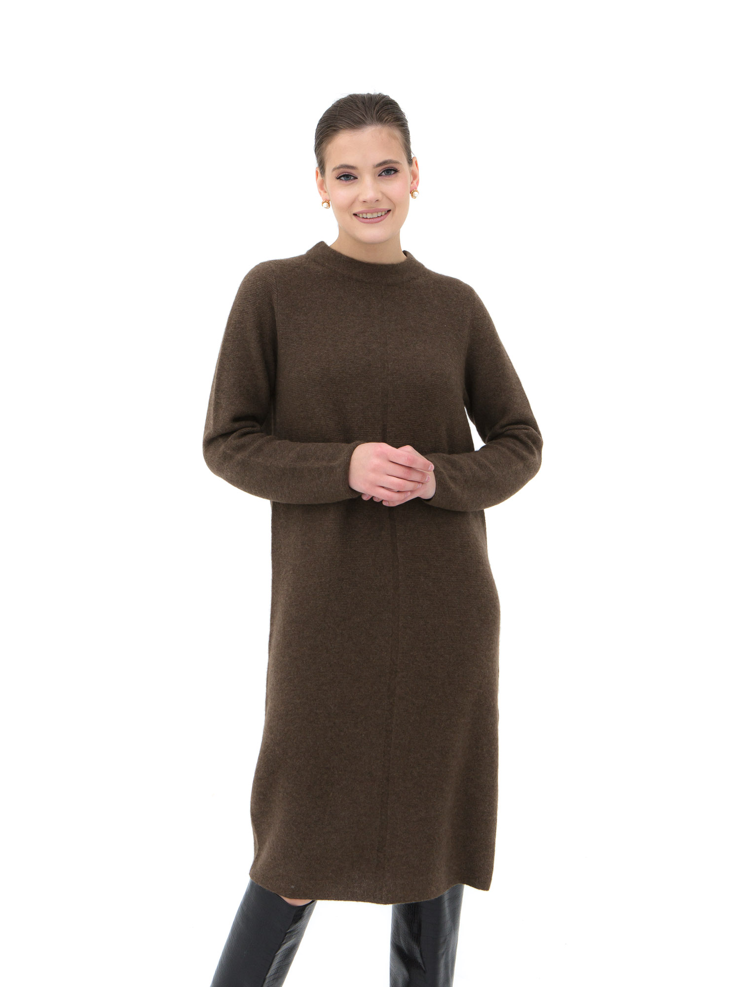 Платье приятное, теплое, почти не колется. Цвет светлее чем на картинке. На мой 46 подошёл размер М. На Рост 162 длина как на фото. Красиво сделана горловина. Посмотрю как будет в носке. Пока нравится |
